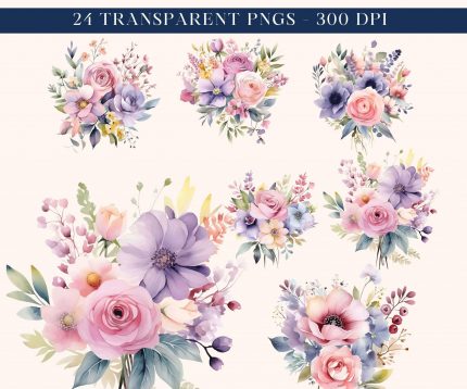 Purple flower png Floral Clipart, Lilac and Lavender watercolor Floral Clipart