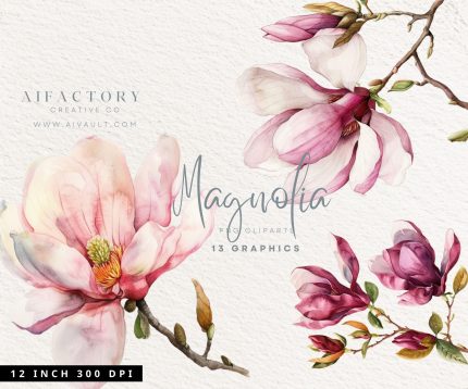 Magnolia clipart, pink flower clipart Commercial Use PNG