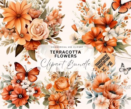 Terracotta Floral Clipart Pack Floral Bouquet PNG