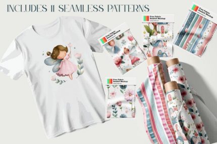 Watercolor Fairy Garden Clipart, Seamless Patterns Textures, Printable Background