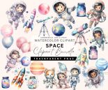 Watercolor Astronaut Space Clipart, Astronaut Nursery, Planets Clip Art