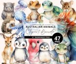 47 Watercolor Australian Clipart saved as transparent PNGs