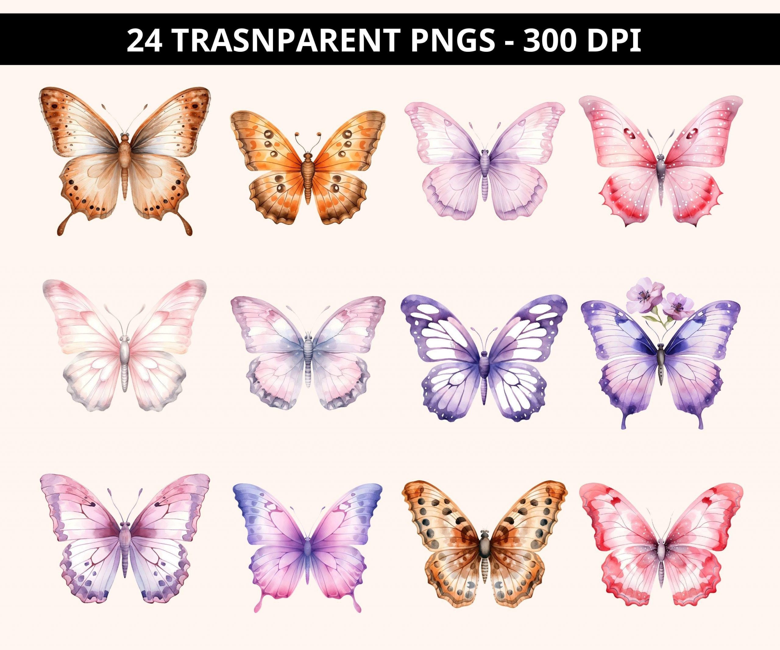 ✔ 22 Unique Butterfly Designs (300 DPI, Transparent Backgrounds)