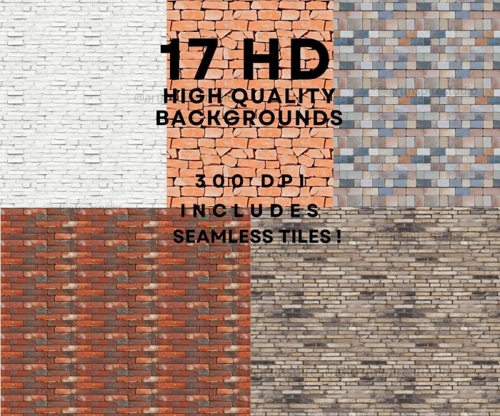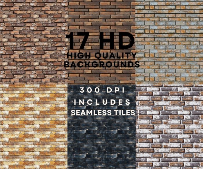 17 Unique Textures: A diverse collection of brick wall textures, including smooth, weathered, rustic, and modern designs.