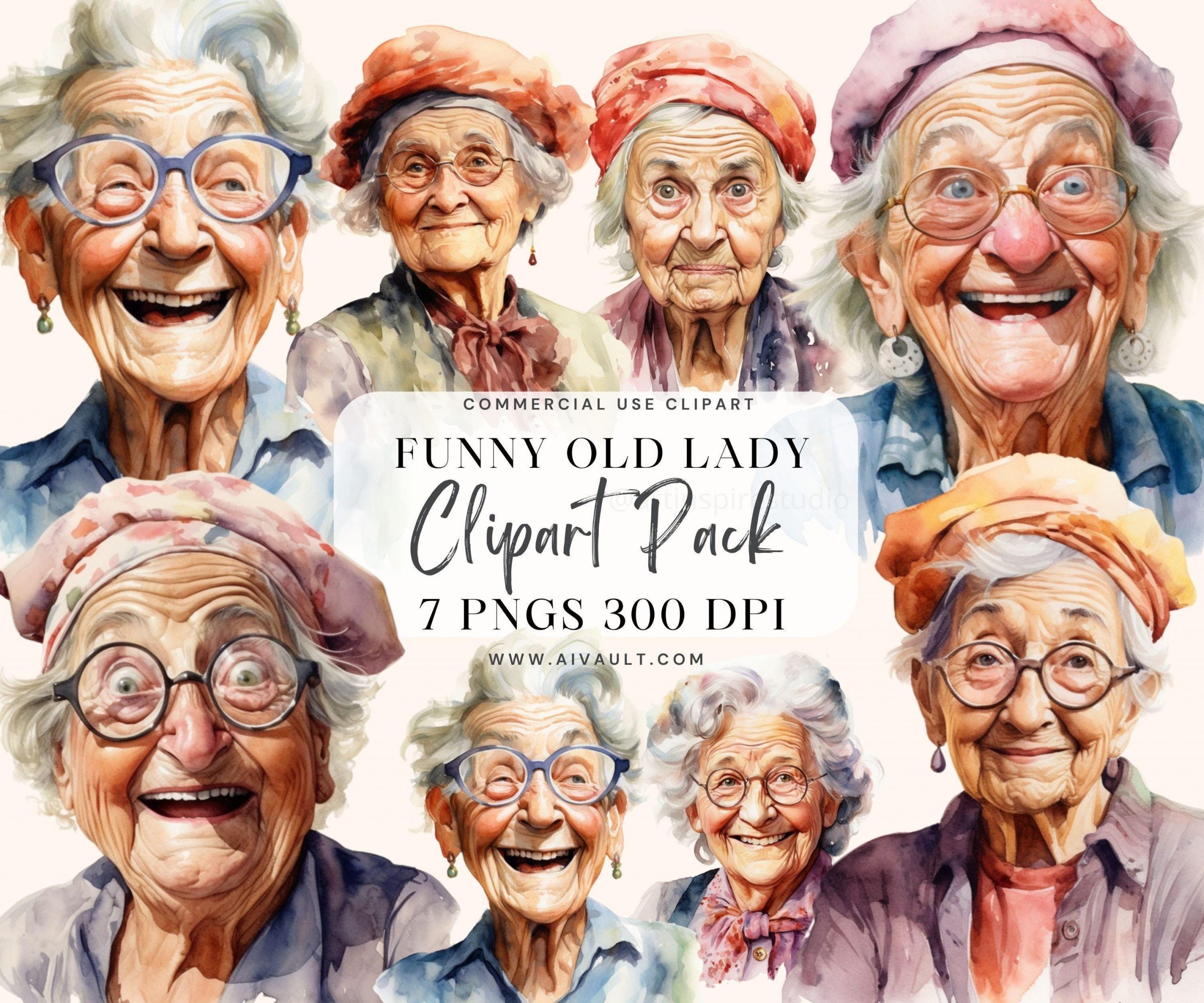 Meet the Life of the Party! 🎉 Funny Old Lady Watercolor Clipart Collection