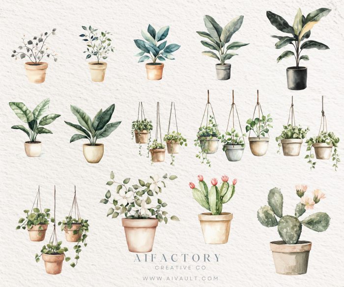 Whether you’re creating a soft botanical theme or adding earthy elements to your designs, these watercolor plants are ready to bloom in your projects.