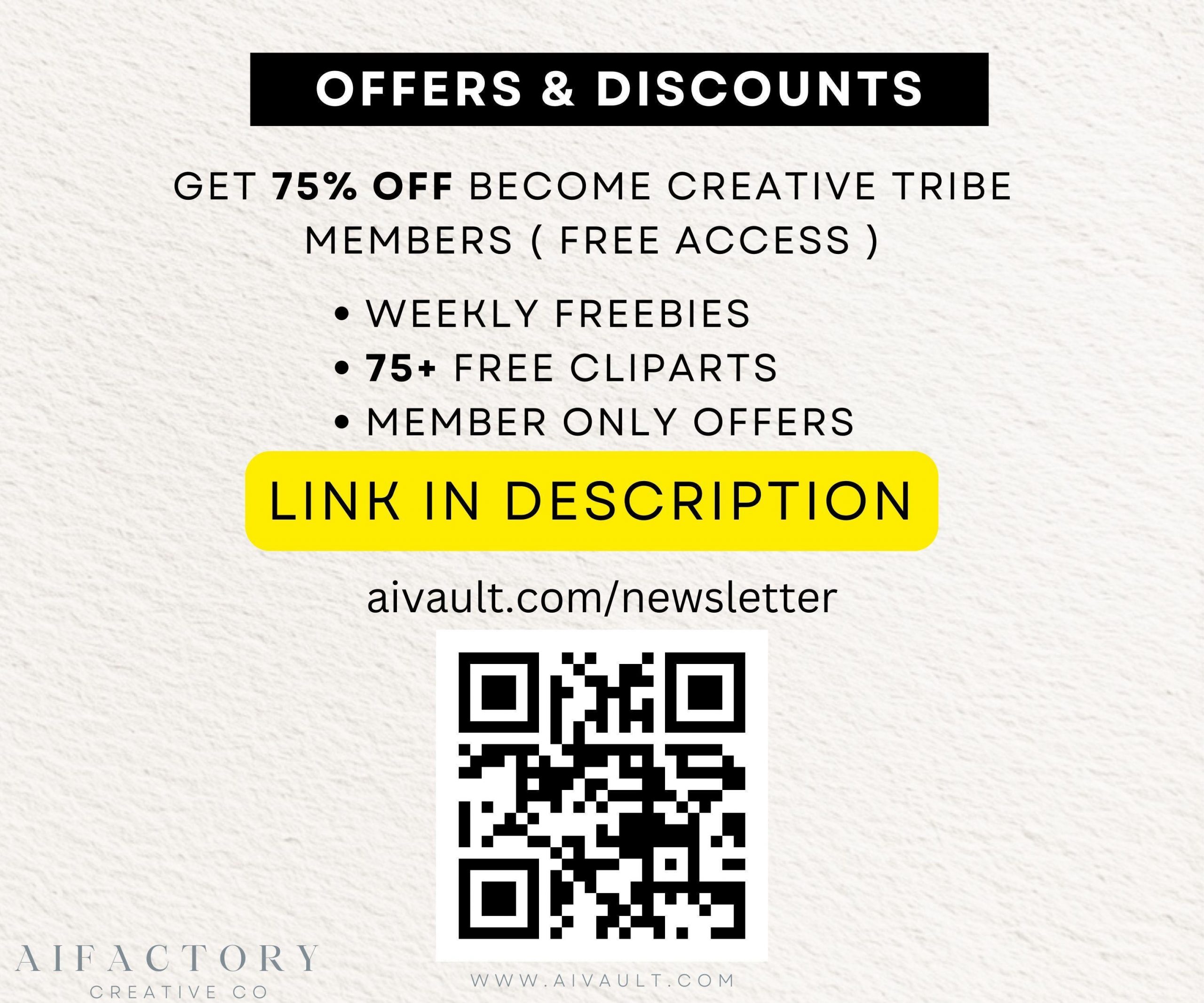 Option 2: Credit Aifactory Cliparts whenever and wherever your product is sold or displayed (e.g., “Graphics by Aifactory Cliparts”). Include this credit on packaging, listings, and promotional materials. Selling offline? Just ensure the credit appears on your product—small but visible.