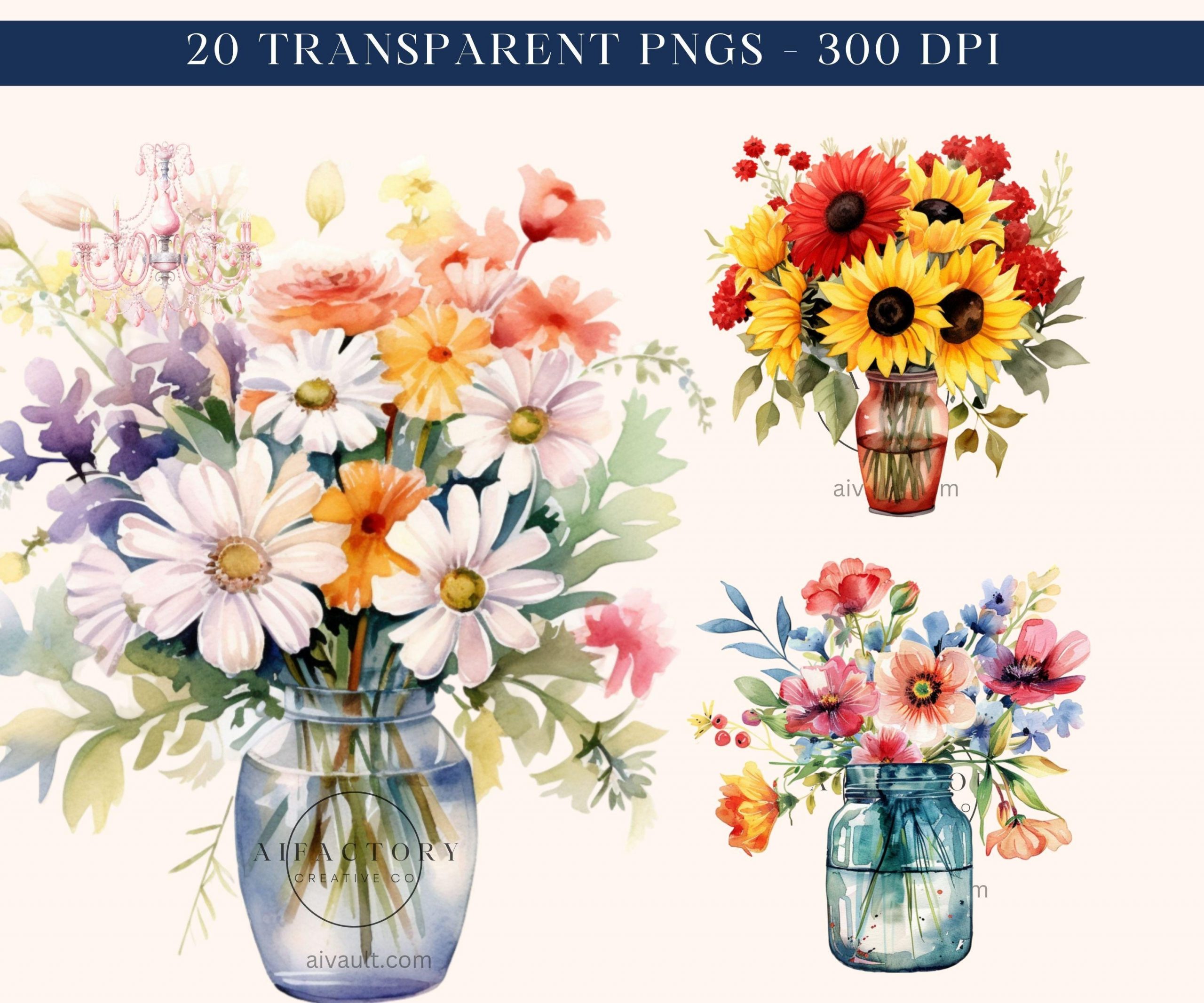 20 Vases of Wild Flowers Clipart Spring Flowers PNGs