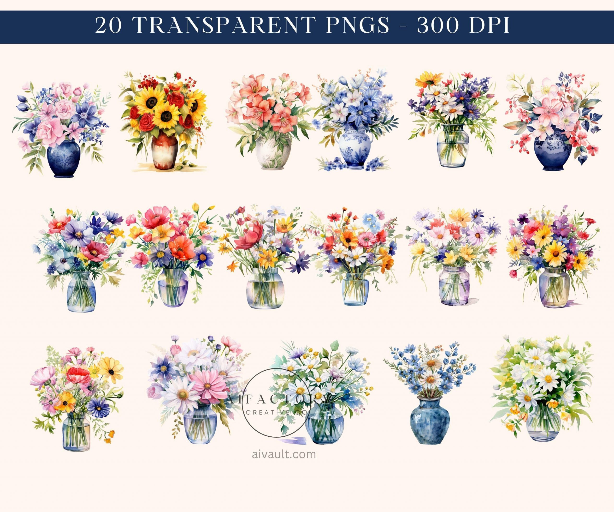 🌼 Wildflower Vase Clipart Collection – 20 Charming Floral PNGs 🌼
