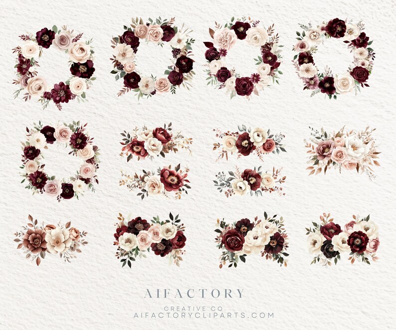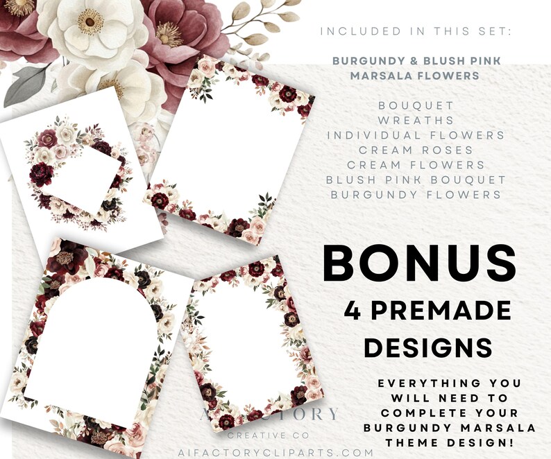 Watercolor Burgundy Blush Floral Collection – Burgundy Flowers